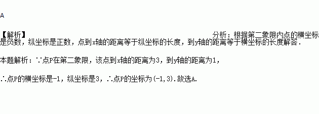 点P在第二象限,若该点到x轴的距离为3,到y轴的距离为1,则点P的坐标是( )