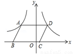如图,在平面直角坐标系中,□ABCD的顶点B,C在x轴上,A,D两点分别在反比例函数y=