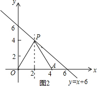 (3)作线段OA的垂直平分线,交直线y=6-x于点P,连接OP,AP,如图2所示,△POA是以OA为底边的等腰三角形,![]()