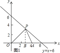 把x=2代入直线y=6-x得:y=6-2=4,此时P坐标为(2,4).