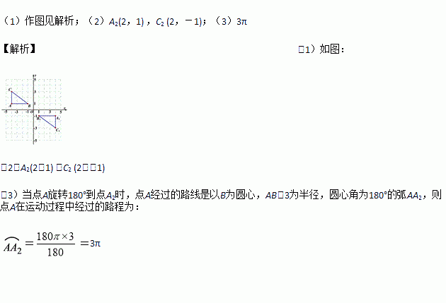 (3)求点A绕点B旋转180°到点A2时,点A在运动过程中经过的路程.