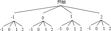 有4张背面完全相同的卡片,正面分别标上数字-1,0,1,2,背面朝上放置在桌子上,搅匀后从中随机的摸出一张卡片,记录数字然后放回,再随机的摸出一张卡片记录数字.用列表法或树状图求下列事件的概率: