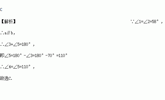 A. 58° B. 70° C. 110° D. 116°