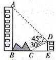 如图,大楼AB右侧有一障碍物,在障碍物的旁边有一幢小楼DE,在小楼的顶端D处测得障碍物边缘点C的俯角为30°,测得大楼顶端A的仰角为45°(点B,C,E在同一水平直线上),已知AB=80 m,DE=10 m,求障碍物B,C两点间的距离.(结果精确到0.1 m)(参考数据: