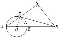 分析:(1)连接OD.证直线与圆相切,即证BD⊥OD.由∠CBD+∠CDB=90°,∠CBD=∠A=∠ODA,可得∠ODA+∠CDB=90°.根据平角定义得证;(2)即求圆的半径求解.连接DE,则∠ADE=90°.在Rt△BCA中,∠CDB=∠A=∠ABD,得∠A=30°.从而在△ADE中利用三角函数求解.