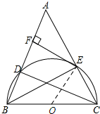 分析 取BC的中点O,连接OE,根据切线的性质和平行线的判定可知AB∥OE,从而得到∠EOC=∠ECO,然后根据OE=OC,可知∠EOC=∠ECO=∠OEC=60°,从而可求得∠A=60°.