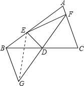 (2)再利用全等的性质可得GD=FD,再有DE⊥GF,从而得出EG=EF,两边和大于第三边从而得出BE+CF>EF.