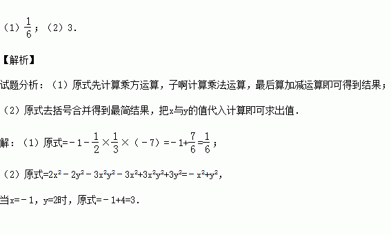 (2)求(2x2﹣2y2)﹣3(x2y2+x2)+3(x2y2+y2)的值,其中x=﹣1,y=2.