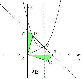 (3)如图2中,将△OCM绕点O顺时针旋转90°得到△OBG,首先证明MN2=CM2+BN2,设M(x1,y1),N(x2,y2),则MN2=[$\sqrt{2}$(x2-x1)]2=2[(x1+x2)2-4x1x2],