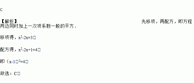 用配方法解方程x2-2x-3=0,原方程应变形为( ).