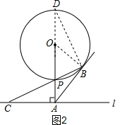 (2)如图2,延长AP交⊙O于D,连接BD,![]()