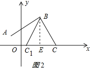 ②当BC=AB=$\sqrt{17}$时,作BE⊥x轴于E,如图2所示: