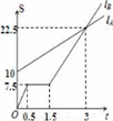 如图,LA,LB分别表示A步行与B骑车在同一路上行驶的路程S(千米)与时间t(小时)的关系.