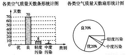 (2)请将条形统计图补充完整;空气质量为“优”所在扇形的圆心角度数是 ;