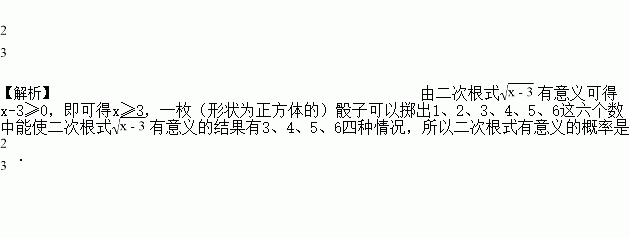 一枚(形状为正方体的)骰子可以掷出1、2、3、4、5、6这六个数中的任意一个,用这个骰子随机掷出的一个数替代二次根式