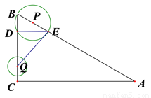 °,半径为1的动圆Q的圆心从点C出发,沿着CB方向以1个单位长度/秒的速度匀速运动,同时动点P从点B出发,沿着BA方向也以1个单位长度/秒的速度匀速运动,设运动时间为t秒(0<t≤5)以P为圆心,PB长为半径的⊙P与AB、BC的另一个交点分别为E、D,连结ED、EQ.