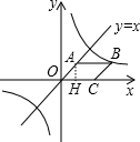 分析 作AH⊥x轴于H,如图,利用一次函数图象上点的坐标特征,设A(t,t),利用菱形面积公式得到OC=$\frac{\sqrt{2}}{t}$,则可表示出B(t+$\frac{\sqrt{2}}{t}$,t),然后利用反比例函数函数图象上点的坐标特征可计算出k的值.