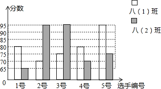 某学校开展数学竞赛,八(1)、八(2)班根据初赛成绩各选出5名选手参加复赛,两个班的5名选手的复赛成绩如图所示.根据图示回答:一班复赛成绩的中位数是