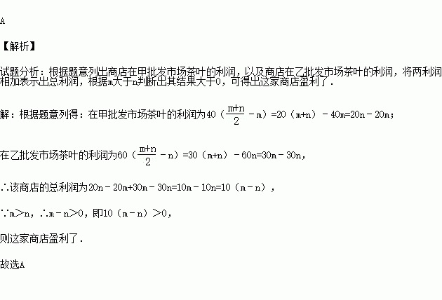 (2015秋•驻马店期末)某商店在甲批发市场以每包m元的价格进了40包茶叶,又在乙批发市场以每包n元(m>n)的价格进了同样的60包茶叶,如果商家以每包