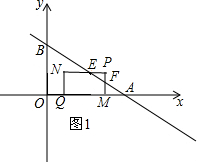 (3)①当0≤t<4时,如图1,此时矩形PMQN被直线AB截得的图形是五边形ENQMF,![]()