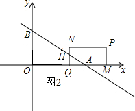 ②当4≤t≤8时,如图2,此时矩形PMQN被直线AB截得的图形是Rt△AQH,![]()