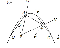 如图,一条抛物线经过原点和点C(8,0),A、B是该抛物线上的两点,AB∥x轴,OA=5,AB=2.点E在线段OC上,作∠MEN=∠AOC,使∠MEN的一边始终经过点A,另一边交线段BC于点F,连接AF.
