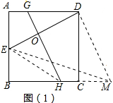 分析 (1))①作平行四边形DGHM,则GH=DM,GD=MH,GH∥DM,通过证得△ADE≌△CDM,即可证得结论;②先证得△EDM是等腰直角三角形,得出EM=$\sqrt{2}$DM=$\sqrt{2}$GH=$\sqrt{2}$DE,然后根据MH+EH≥EM,GD=MH,即可证得结论;