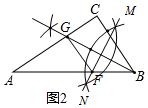 (2)如图2所示,作∠B的平分线BG,交AC于G,作BG的垂直平分线MN,交AB于F,则点F即为所求.![]()