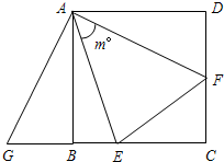 如图,已知正方形ABCD的边长是2,∠EAF=m°,将∠EAF绕点A顺时针旋转,它的两边分别交BC、CD于点E、F,G是CB延长线上一点,且始终保持BG=DF.
