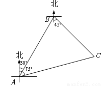 南海是我国的南大门,如图所示,某天我国一艘海监执法船在南海海域正在进行常态化巡航,在A处测得北偏东30°方向上,距离为20海里的B处有一艘不明身份的船只正在向东南方向航行,便迅速沿北偏东75°的方向前往监视巡查,经过一段时间后在C处成功拦截不明船只,问我国海监执法船在前往监视巡查的过程中行驶了多少海里?