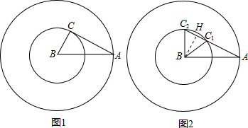 分析:根据AB=2BC,可知点A应在以B为圆心,2BC为半径的圆上,点C在以B为圆心,BC为半径的圆上,则AC与小圆的位置关系只有相切或相交两种情况,然后解答可.