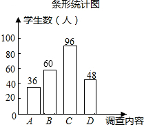 解答 解:(1)该校调查的学生总数=48÷20%=240(人);