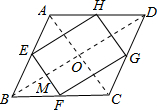 分析:先连接AC、BD,由于E、H是AB、AD中点,利用三角形中位线定理可知EH∥BD,同理易得FG∥BD,那么有EH∥FG,同理也有EF∥HG,易证四边形EFGH是平行四边形,而四边形ABCD是菱形,利用其性质有AC⊥BD,就有∠AOB=90°,再利用