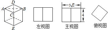 分析 根据三视图图形得出AC=BC=3,EC=4,然后求出这个长方体的表面积.