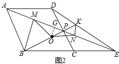 (3)作OG⊥AE于G,根据平行线等分线段定理得到MG=NG,又OG⊥MN,证明△MON是等腰三角形,根据直角三角形的性质和锐角三角函数求出∠MON的度数.