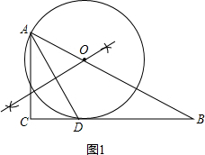 解:(1)如图1,作AD的垂直平分线交AB于点O,O为圆心,OA为半径作圆.
