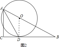分析 (1)根据题意得:O点应该是AD垂直平分线与AB的交点;由∠BAC的角平分线AD交BC边于D,与圆的性质可证得AC∥OD,又由∠C=90°,则问题得证;