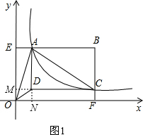 分析 (1)设反比例函数解析式为y=$\frac{k}{x}$,设A点坐标为(x,y),则OE=y,AE=x,利用S△AOE=$\frac{1}{2}$可求得xy=1,可求得k,求得函数解析式;