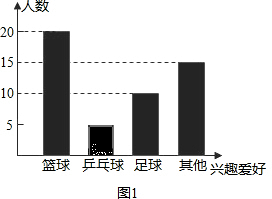 (2)请在图1中将“乒乓球”部分的图象补充完整.