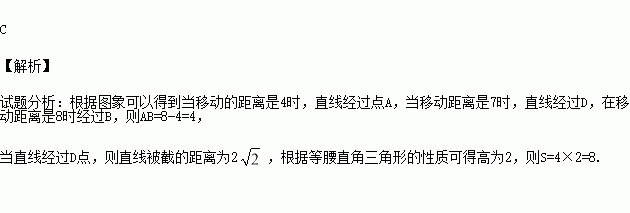 如图1,在平面直角坐标系中,将□ABCD放置在第一象限,且AB∥x轴.直线y=-x从原点出发沿x轴正方向平移,在平移过程中直线被平行四边形截得的线段长度l与直线在x轴上平移的距离m的函数图象如图2所示,那么ABCD面积为( )