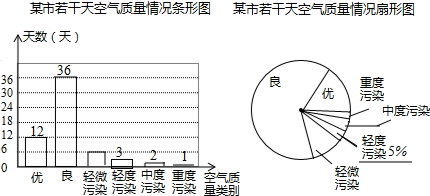 分析 (1)根据良的天数除以良的天数所占的百分比,可得样本容量,根据样本容量乘以轻微污染所占的百分比求出轻微污染的天数,可得答案;