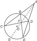 分析:连接AF,并延长AF交⊙O于G;首先根据三角形外角的性质证得∠C+∠E=∠CFE-∠CAE;而后根据圆周角定理得∠C=∠E,即可求出∠E的度数;由于∠CFE是△DFE的外角,由此可求得△CDE的度数.