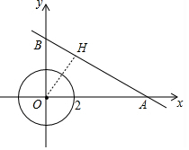 ∵半径为2的⊙O与直线AB相离,