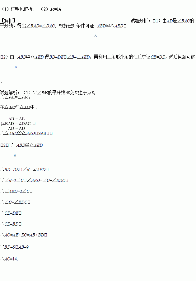 (2)已知BD=5,AB=9,求AC长.