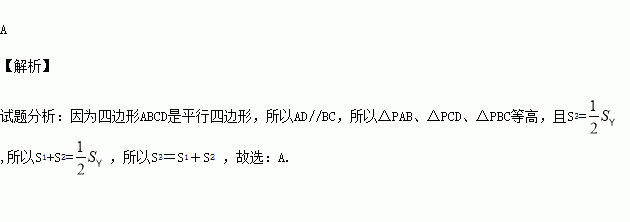 如图,点P为□ABCD的边CD上一点,若△PAB、△PCD、△PBC的面积分别为S1、S2和S3,则它们之间的大小关系是( )