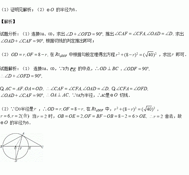 如图,以△ABC的BC边上一点O为圆心的圆,经过A,B两点,且与BC边交于点E,D为BE的下半圆弧的中点,连接AD交BC于F,若AC=FC.