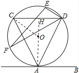 (2)连接OA,并反向延长交CD于点H,连接OC,由直线AB与⊙O相切于点A,弦CD∥AB,可求得OH的长,然后由勾股定理求得AC的长,又由∠CDE=∠ADF,可证得EF=AC,继而求得答案.