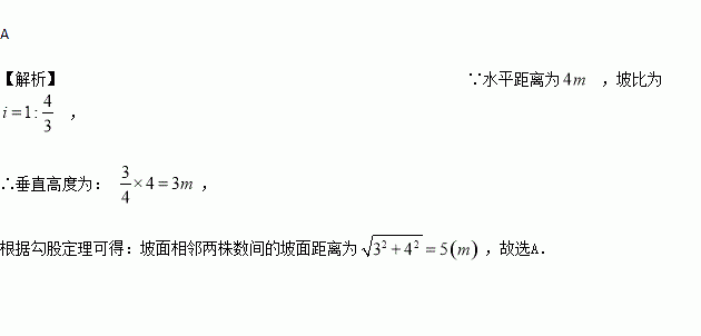 的山坡上种树,也要求株距为4m,那么相邻两树间的坡面距离为( )