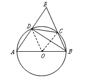 | 解:(1)连结OD,OC, ∵AD⊥BD, ∴弦AB是⊙O的直径, ∴OD=OC= ∴△DOC是等边三角形, ∴∠DOC=60°, ∴∠DBC=30°, ∵AD⊥BD, ∴∠EDB=90°, ∴ 在Rt△BD E中,∠E=90°-∠DBC=90°-30°=60°; |
