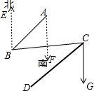 分析 利用方向角得到BE∥AF,BE∥CG,则根据平行线的性质得∠EBA=∠FAB=45°,∠GCB=∠EBC=80°,于是可计算出∠ABC=35°,∠DCB=35°,则∠ABC=∠DCB,于是可根据平行线的判定可得CD∥AB.